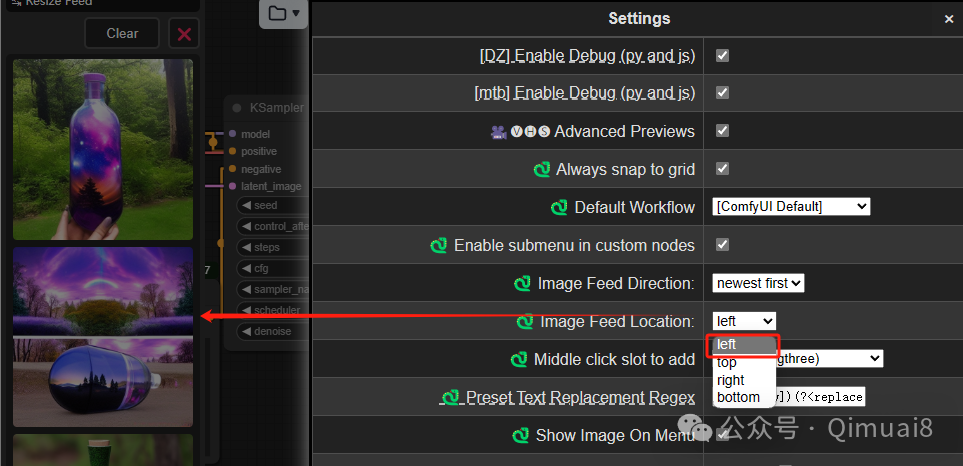 比如点击选择“Image Feed Loaction”中的选项,就可以选择把生成的图片放在相应的位置。