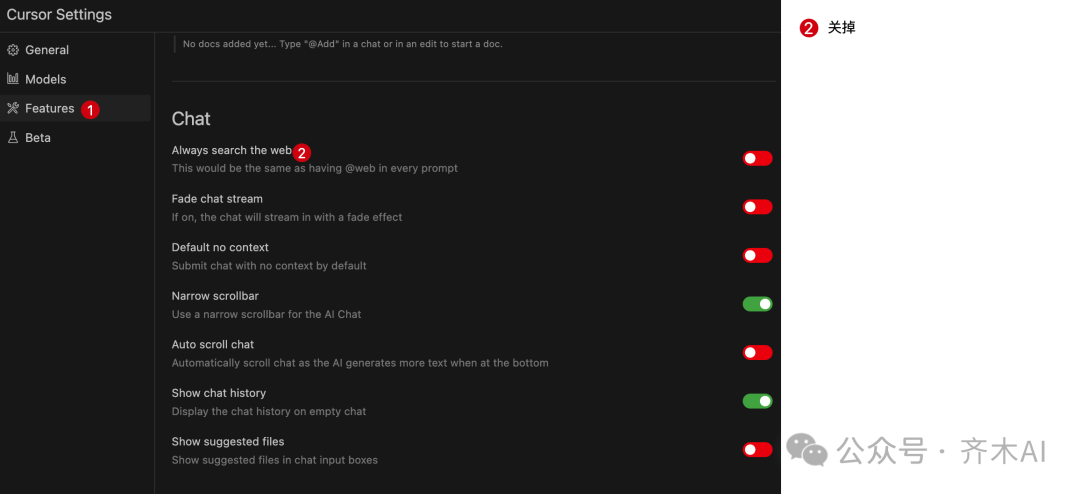 Chat部分关掉搜索功能,因为 AI回乱搜索,效果不好。