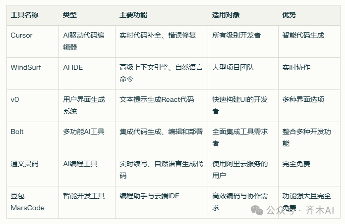 Cursor、WindSurf、v0、Bolt.new、通义灵码以及豆包MarsCode