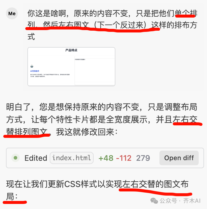 但是Claude-Sonnet-3.5秒懂,他称之为“左右交替排布图文”,简单的8个字,就代替了我的16个字,并且还易理解、无歧义。