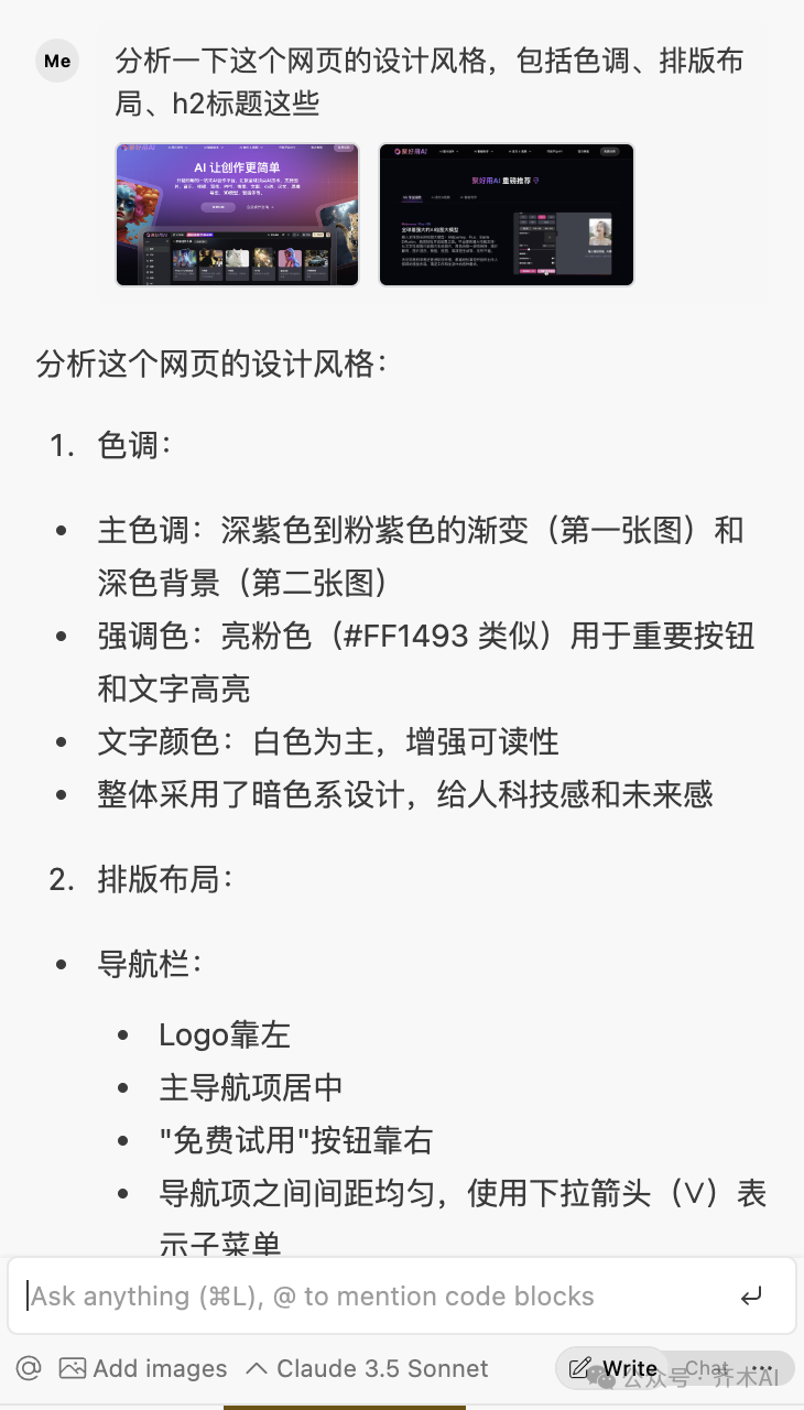 tuning“,比如说开发一个网站,直接把对标网站截图丢给AI,让他分析这个网页的色调、排版布局,标题等,然后让AI按照这种感觉来帮你生成相应的网站。