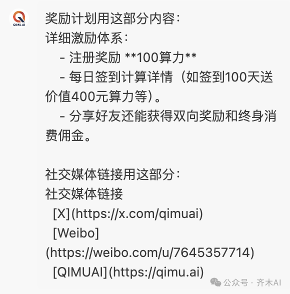 比如这次我要加上宣传的产品网址以及社交媒体链接,那么我们就可以这样和AI说: