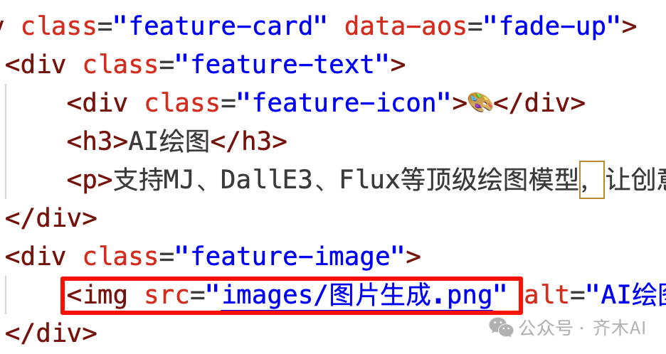 比如这个部分,AI在我的要求下,增加了图片标签,并自定义名称为“图片生成”,那么这时候我们就有两个办法让图片能够正确显示:
